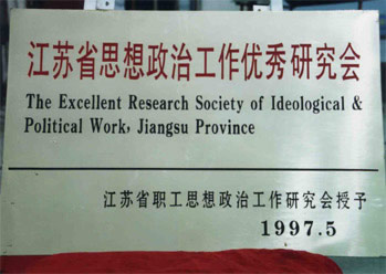 1997年5月,江蘇省職工思想政治工作研究會(huì)授予我公司“江蘇省思想政治工作優(yōu)秀研究會(huì)”稱號。