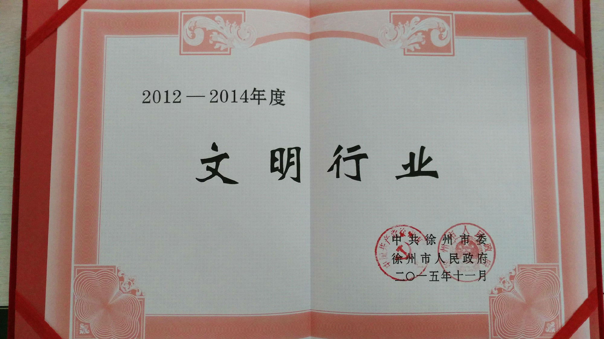 公司榮獲市2012-2014年度文明行業(yè)榮譽稱號