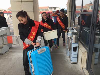 35,在公司團委的組織下,各基層團支部積極開展。志愿者們身披綬帶深入各大站點、車場,開展站臺咨詢,導(dǎo)乘服務(wù),主動扶老攜幼,為乘客兌換零錢,共發(fā)放乘車指南1000余份,深受乘客歡迎。圖為賈汪公司志愿者在幫助江蘇安全技術(shù)職業(yè)學(xué)院開學(xué)返校的學(xué)生運送行李。