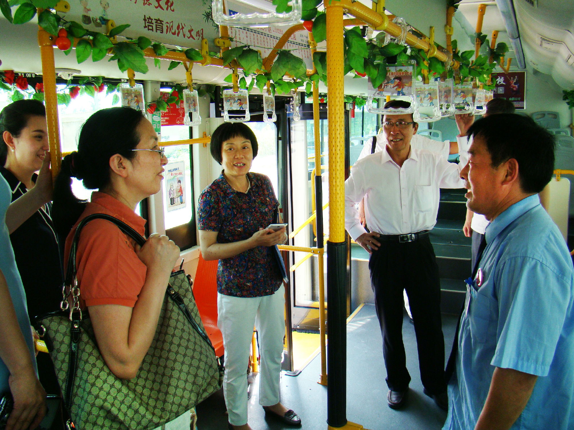 為有效提高老年人乘車安全系數(shù),公司為14路線在車廂內(nèi)設(shè)置“老幼病殘?jiān)小睈?ài)心專座的基礎(chǔ)上,專門(mén)設(shè)置了“敬老專座”; 為了給老年乘客提供優(yōu)美的乘車環(huán)境,還在車廂的頂部和前部放置各種綠色植物和鮮花,同時(shí),在駕駛座后面安裝了便民袋,配備常用藥物、老花鏡、針線包、意見(jiàn)簿及公交乘車指南、報(bào)紙、老年人專用雨披等物,讓老年乘客登上公交車,就能感受到清新氣息。