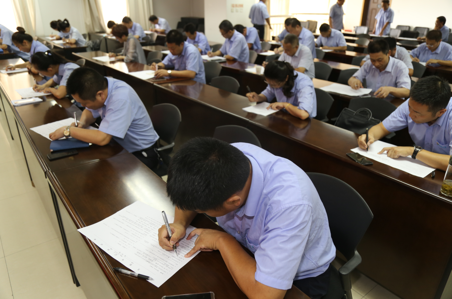 此次測試采取閉卷方式進行,測試內(nèi)容包括《中國共產(chǎn)黨章程》、黨的十九大精神、支部黨建工作業(yè)務(wù)知識等方面內(nèi)容,設(shè)置了填空題、判斷題、單選題、多選題、簡答題和論述題。通過真學(xué)真考,以考促學(xué),確保黨務(wù)工作者把學(xué)習(xí)黨的十九大精神、黨務(wù)知識入腦入心。測試現(xiàn)場,全體人員認真思考作答,在規(guī)定時間里全部完成答題。