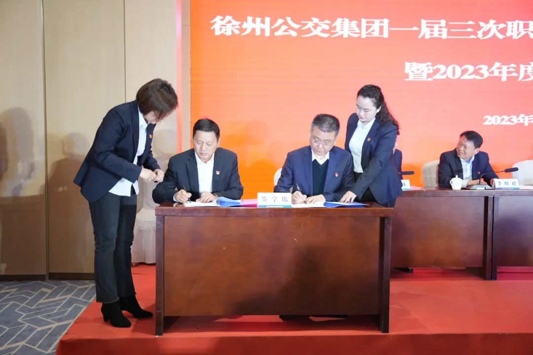 會議聽取并審議了2023年度工作報告和一屆三次職工代表大會會議決議,表決通過了5項草案,簽訂了2023年度經(jīng)營目標責任書、安全目標責任書和工資專項集體合同、女職工權益保護集體協(xié)議,會議表彰了2022年度集團先進集體和先進個人,城北巴士公司、新城巴士公司、供應鏈公司、安全環(huán)保部、經(jīng)營管理部等5家單位、部門作了大會交流發(fā)言。