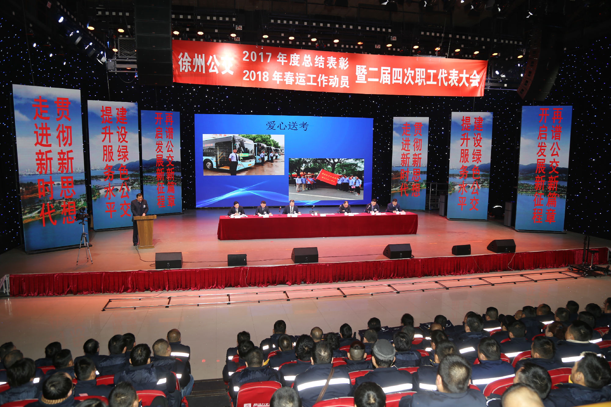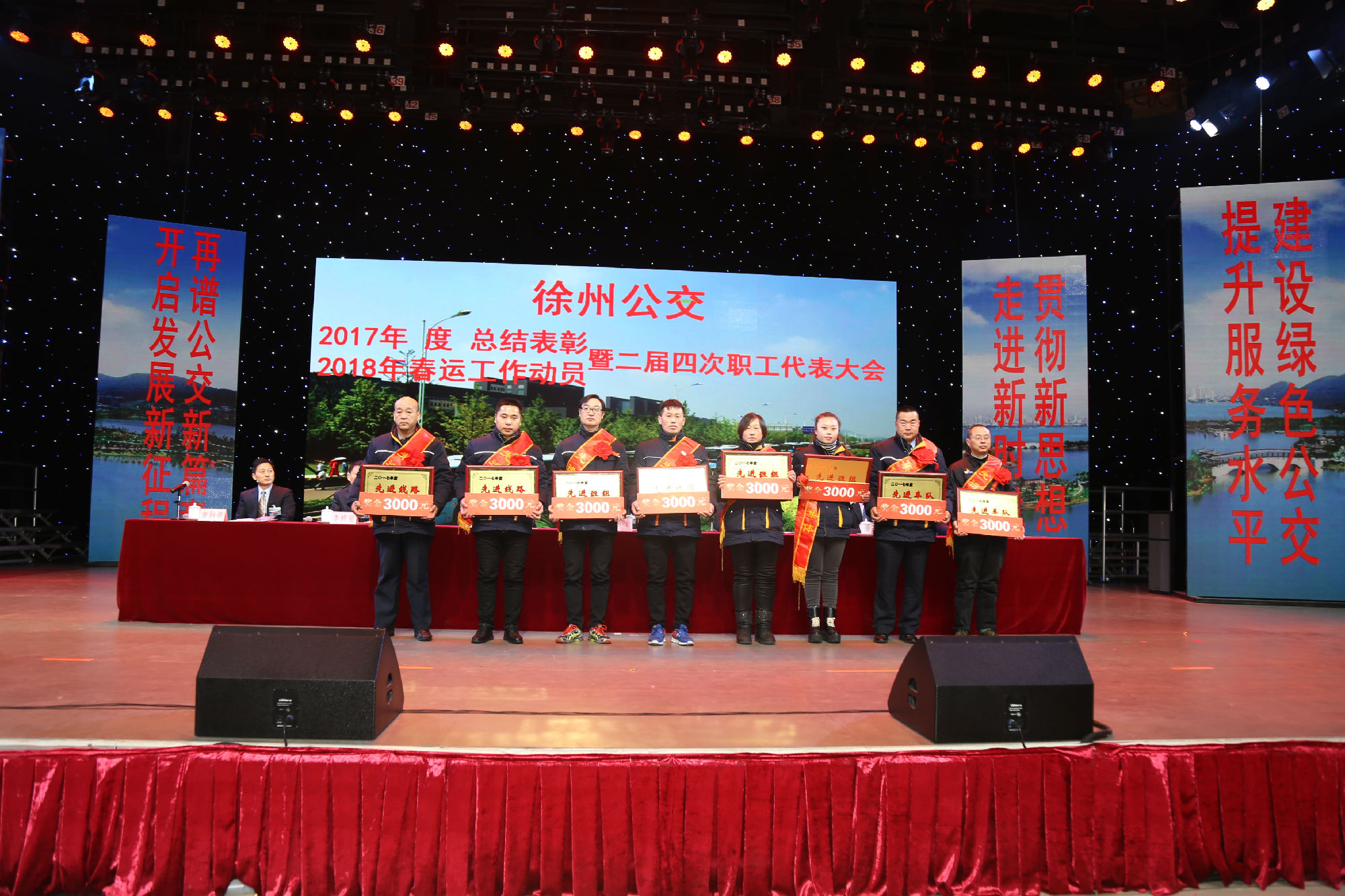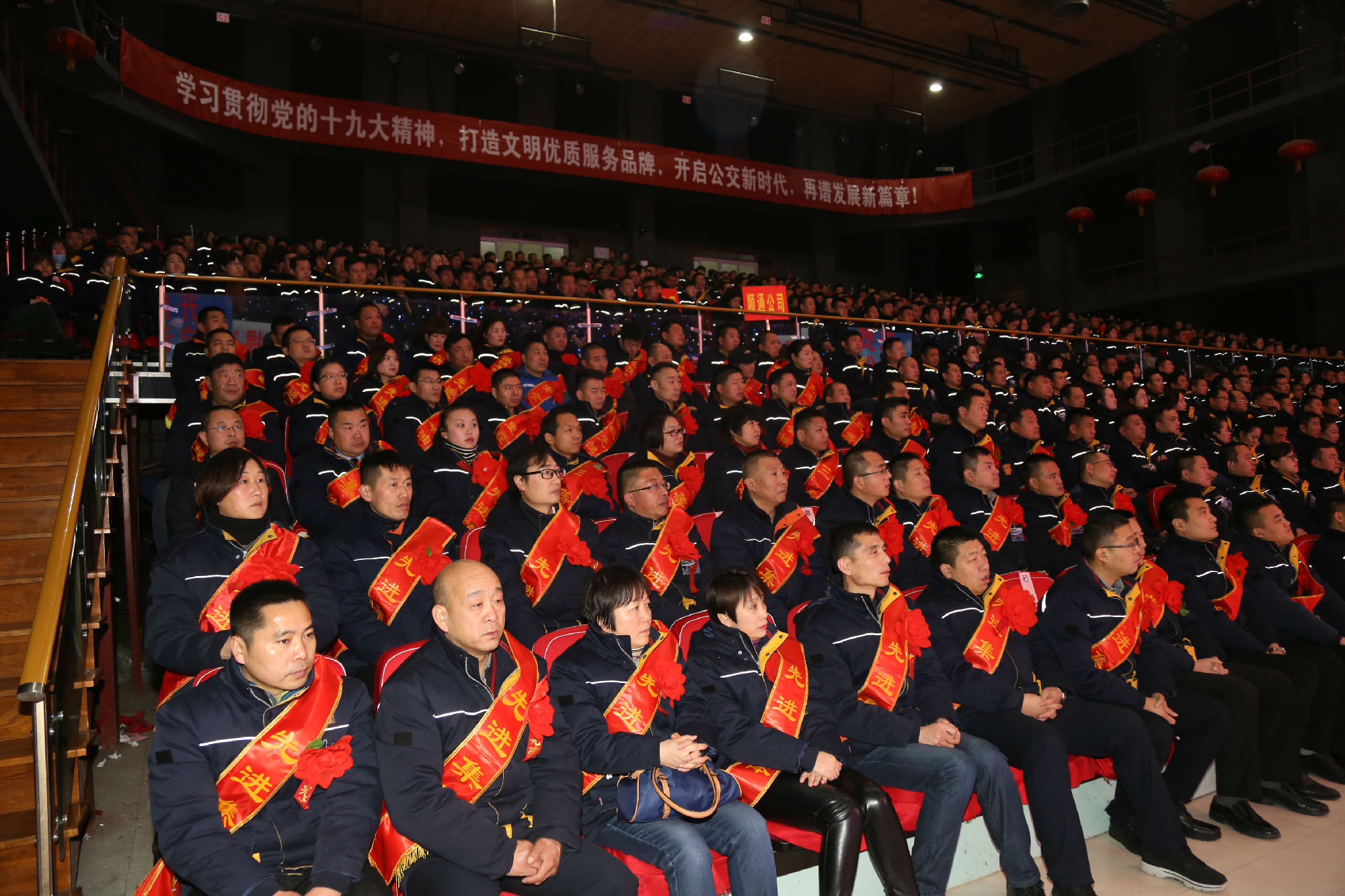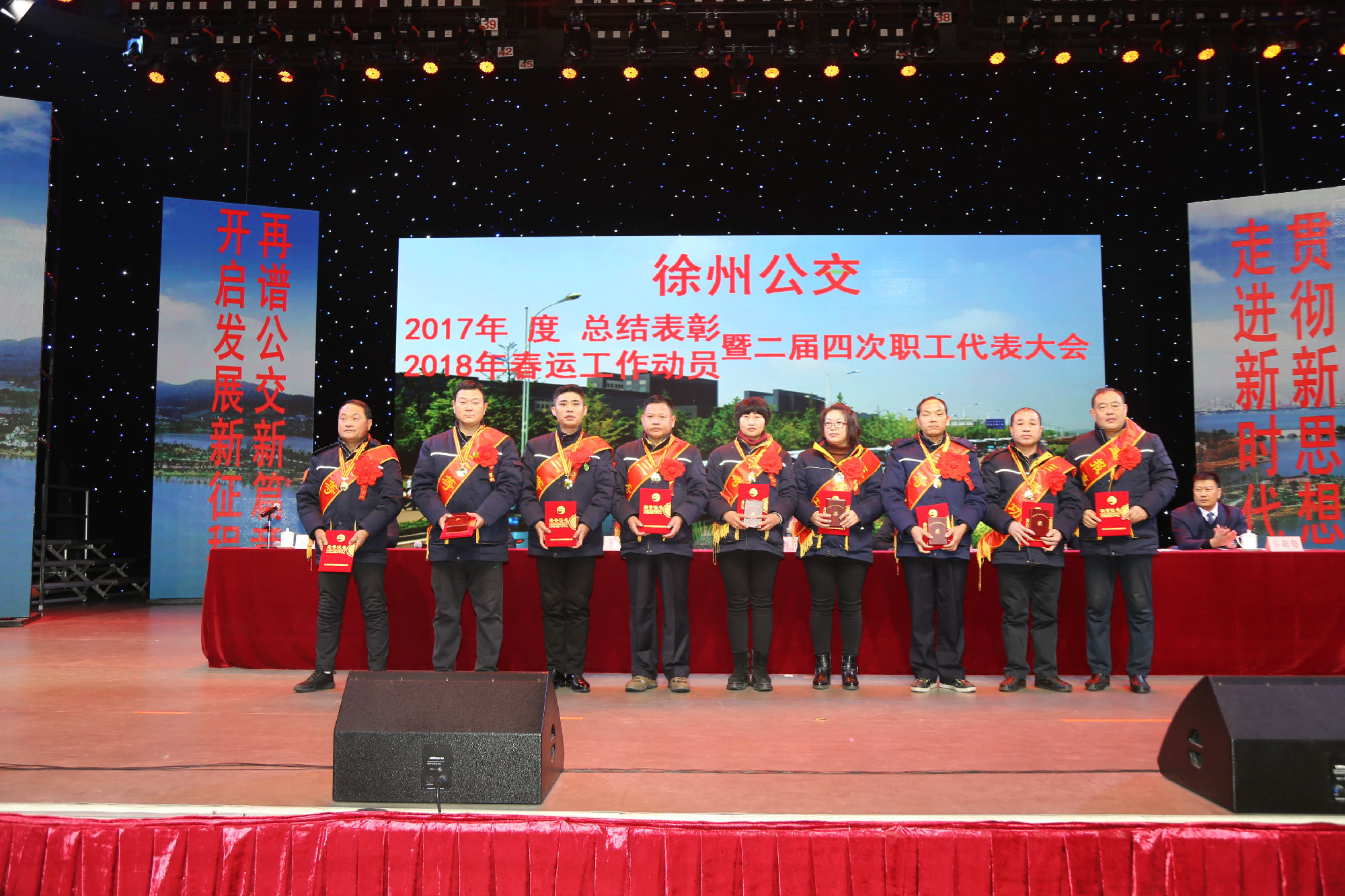 大會在莊嚴(yán)的國歌聲中拉開序幕。公司董事長、總經(jīng)理杜紅軍首先作經(jīng)理工作報告,對2017年“改革創(chuàng)新年”工作進行了全面總結(jié):一、實施“同城同價”,優(yōu)化運營管理,實現(xiàn)服務(wù)水平新突破。連續(xù)第五年面向全市征集線路線網(wǎng)優(yōu)化意見近3000條,據(jù)此新辟優(yōu)化線路29條。二、深化資源共享,在互聯(lián)網(wǎng)+企業(yè)管理上譜寫新藍(lán)圖。繼續(xù)深化集中維修,推行集中例檢。論證實施支付寶、微信、銀行卡閃付等智能化移動支付方式。三、深化文明創(chuàng)建,打造優(yōu)秀公交,服務(wù)民生出行贏得新口碑。在國檢、省檢中未失一分,圓滿完成創(chuàng)建驗收任務(wù)。投訴總數(shù)和有責(zé)投訴同比實現(xiàn)“雙下降”。乘客表揚同比上升近20%。公司在2016年行風(fēng)熱線上線單位滿意度評議投票中名列榜首。率先打造公交行業(yè)禮讓斑馬線嶄新形象,圓滿完成公交反恐防暴工作。四、著力綜合管理,聚合內(nèi)生動能,增強企業(yè)發(fā)展新優(yōu)勢。重新修訂2012版管理制度匯編和新版《徐州公交獎懲條例》。五、踐行十九大精神,推進和諧發(fā)展,開創(chuàng)黨群工作新面貌。接著,杜總分析了工作中存在的問題,提出下步工作重點。一、建設(shè)現(xiàn)代化公交,提升經(jīng)營管理水平,保障企業(yè)良性有序運行;二、踐行集約共享理念,深化科技應(yīng)用,開創(chuàng)公交事業(yè)發(fā)展新局面;三、建設(shè)平安公交,提升服務(wù)口碑,展示文明公交新形象;四、踐行十九大精神,構(gòu)建和諧公交,開啟黨群工作新面貌。
